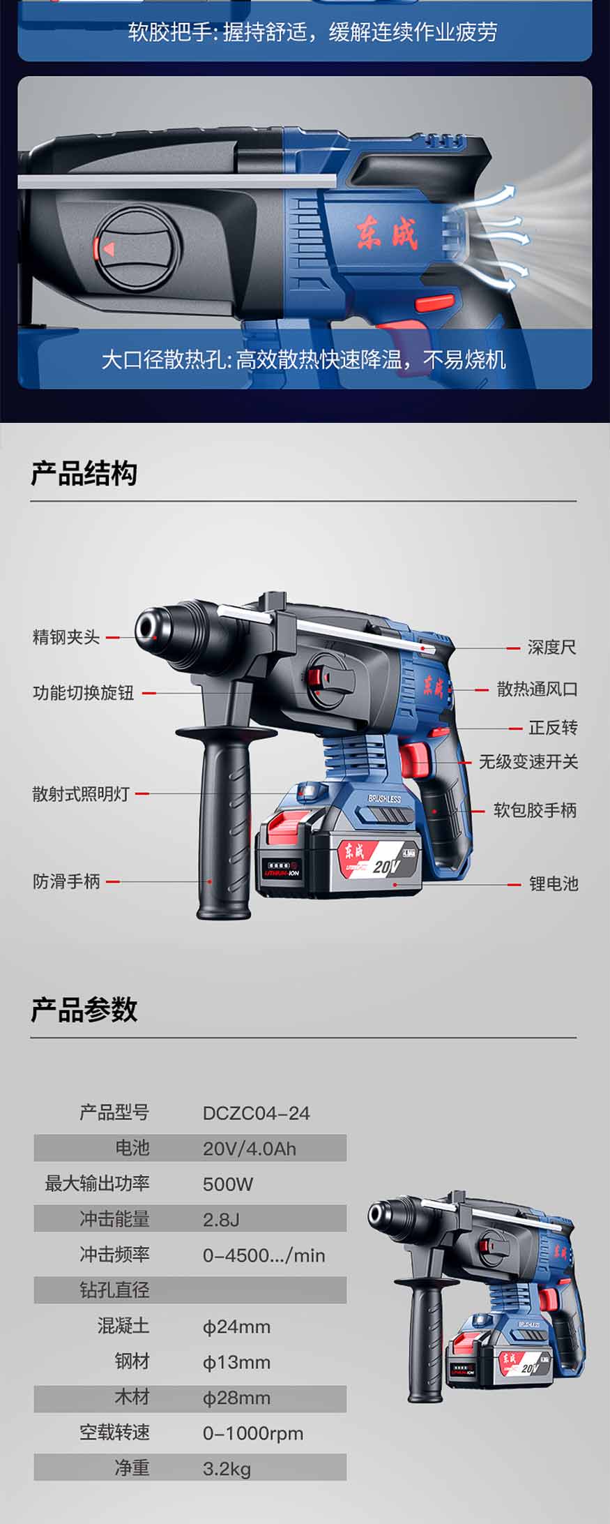 充电式无刷电锤DCZC04-24E